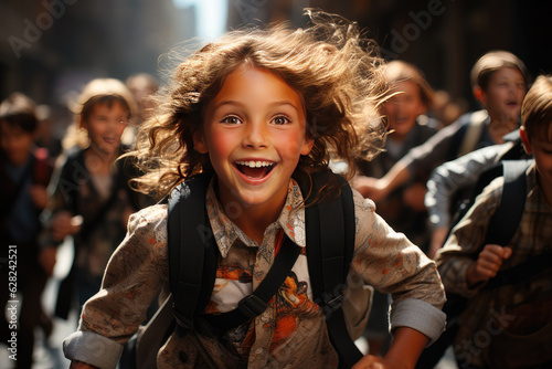Fototapeta premium hyper-realistic As the new school year begins, the image captures the bustling scene of students heading
