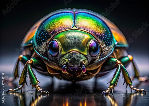 Fototapeta premium hyper-realistic close-up of beetle's compound eyes on glossy black surface...