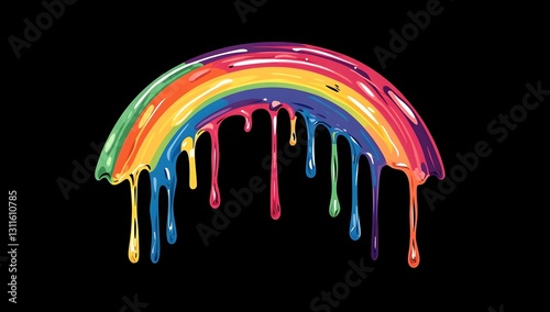Naklejka premium Hyper-Realistic Colorful Dripping Rainbow with Detailed Gradient and Contour Lines, Vectorized Flat Design on Black Background