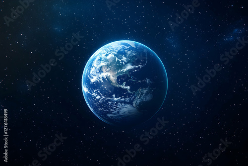 Fototapeta premium Hyper-realistic depiction of Earth against a dark starry sky with soft galactic glow
