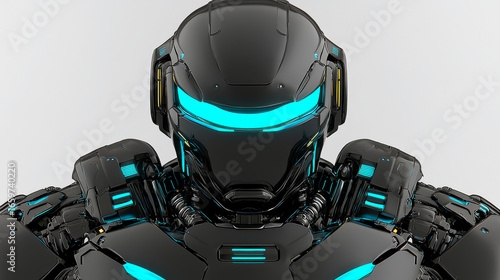 © Sompong, Naklejka premium Hyper realistic domestic AI assistant robot with sleek black design and glowing blue accents, showcasing advanced technology and intricate details. This futuristic robot embodies innovation
