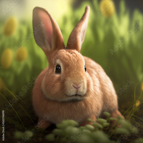 © Gabriel, Fototapeta premium Hyper realistic easter bunny with forest background 03