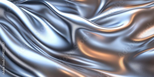 © btiger, Obraz premium hyper-realistic flowing metallic silver liquid fabric background