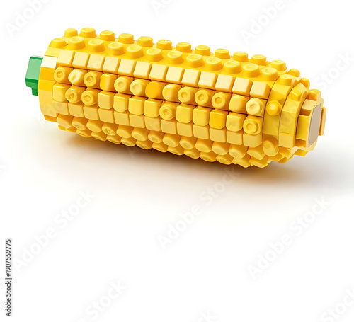 © Arief, Fototapeta premium Hyper-realistic LEGO corn cob toy with yellow brick kernels
