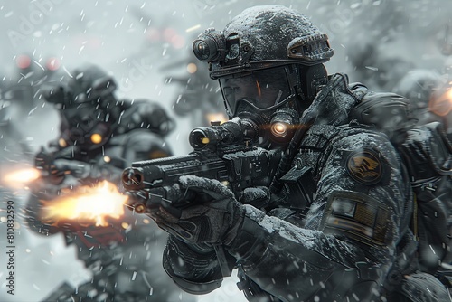 © Michael, Fototapeta premium Hyper-Realistic Symmetrical Fury: A Dark Futuristic Sci-Fi Video Game Scene