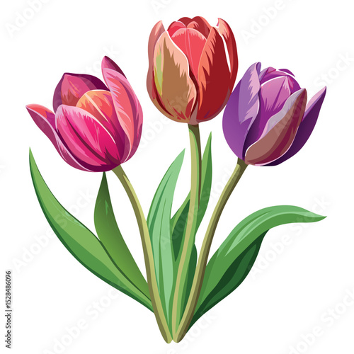Fototapeta premium Hyper-Realistic Tulips – Watercolor Vector Icon on White Background