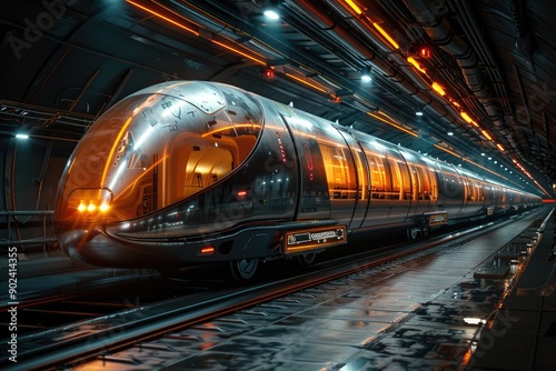 © Chanwit, Naklejka premium Hyperloop pod in a test tunnel, illustrating next-gen rapid transit systems