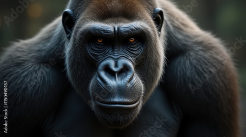 © SEYYAH, Obraz premium Hyperrealistic Gorilla Portrait: Rough Skin Texture