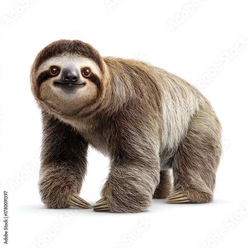 Naklejka premium Hyperrealistic image of a sloth in lush tropical environment nature...