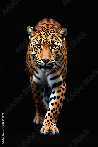 © Bayuadi, Fototapeta premium Hyperrealistic Leopard Walking Directly Towards the Viewer
