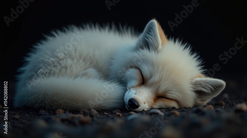 © Cloudy, Fototapeta premium Hyperrealistic Photo of a Sleeping Arctic Fox
