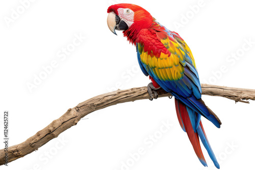 © DA, Naklejka premium Hyperrealistic Scarlet Macaw Perched on an Invisible Branch, Perfect for Wildlife and Nature Projects