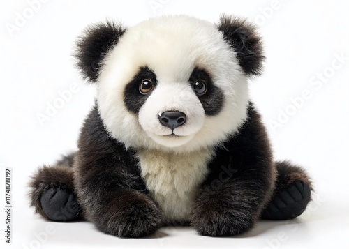 Fototapeta premium Hyperrealistic Soft Plush Panda Toy on White Background - Studio Shot
