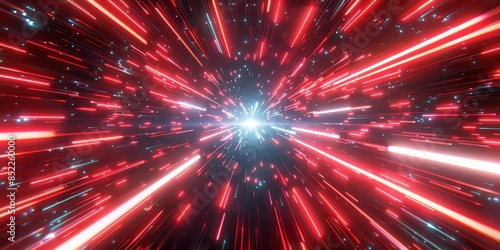 Fototapeta premium Hyperspace Journey Through Red and Blue Light Streaks
