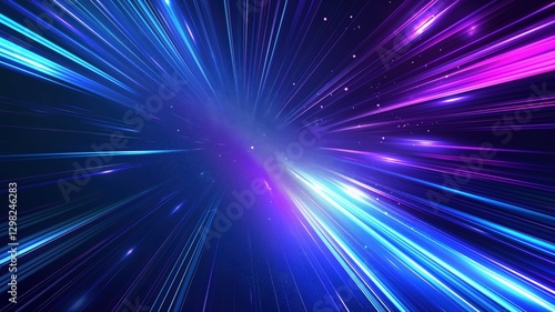 Obraz premium Hyperspace, purple blue light rays radiating