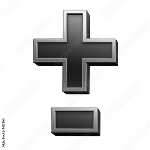 Fototapeta premium Hyphen, minus, plus marks from black with silver shiny frame alphabet set, isolated on white. Computer generated 3D photo rendering.