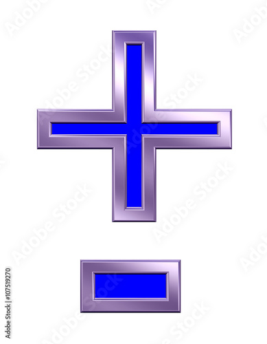 © Piotr Pawinski, Fototapeta premium Hyphen, minus, plus marks from blue with shiny frame alphabet set, isolated on white. 3D illustration.