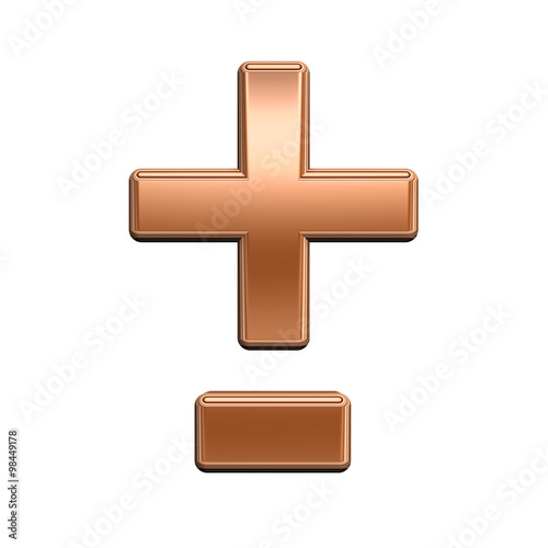 © Piotr Pawinski, Obraz premium Hyphen, minus, plus marks from shiny copper alphabet set, isolated on white. Computer generated 3D photo rendering.