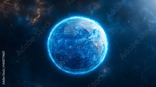 Fototapeta premium Hypothetical planet glowing in deep space.