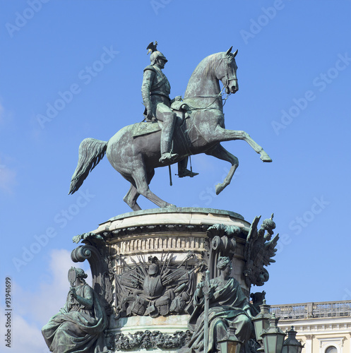 Obraz premium Памятник царю Николаю I на фоне голубого неба. Санкт-Петербург