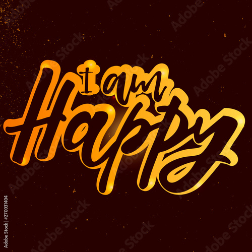 Fototapeta premium I am happy handlettering phrase. Design print for sticker, poster, sign,...