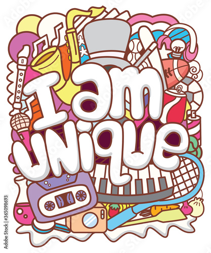 Fototapeta premium I am unique typography with doodle art