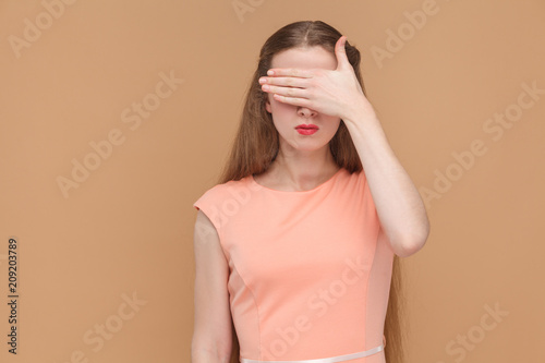 Fototapeta premium i dont want to see this. covered eyes with hand.