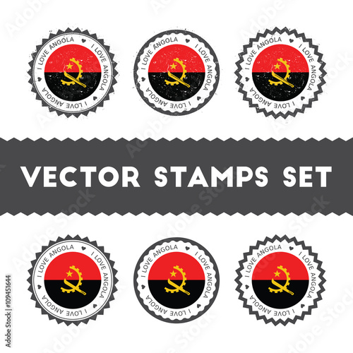 Naklejka premium I Love Angola vector stamps set. Retro patriotic country flag badges....