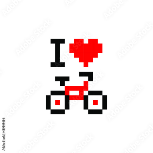 © Octavio, Fototapeta premium I love bicycle pixel. 8 bit. bike. vector icon. heart.