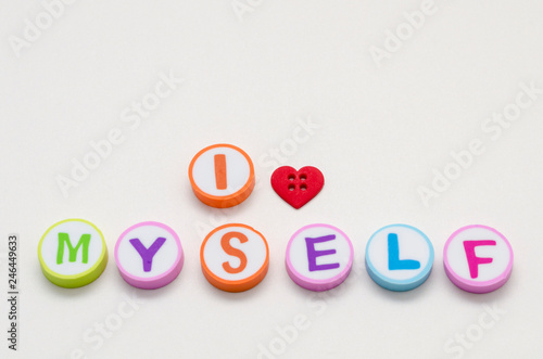 Fototapeta premium I love myself phrase made from colorful circles with letters and a heart...