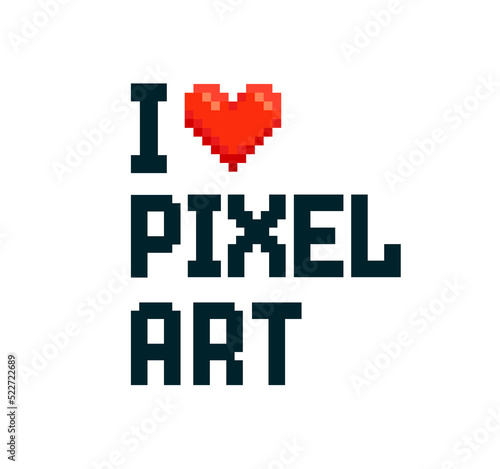 © VRTX, Obraz premium I love Pixel Art retro poster design in 8-bit video game style
