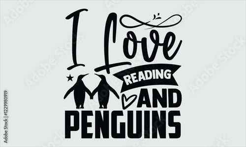 Fototapeta premium I love reading and penguins- Penguin T-shirt Design, Hand drawn unique artistic composition with a modern touch on a clean white background, Icon Concept isolated. Professional vector image, great for