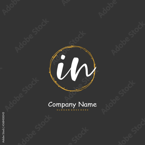 Fototapeta premium I N IN Initial handwriting and signature logo design with circle. Beautiful...