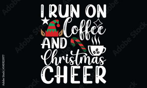 © BINOYCHANDRA, Fototapeta premium i run on coffee and christmas cheer love coffee hotdrink christmas cheer calligraphy t shirt design
