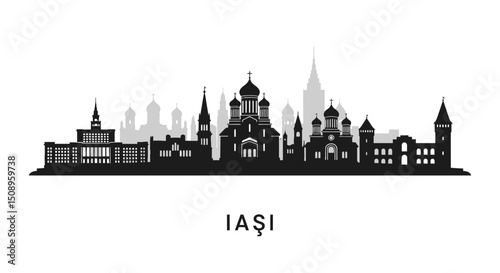 Fototapeta premium Iai Romania Skyline with City Silhouette, and Black and White.
