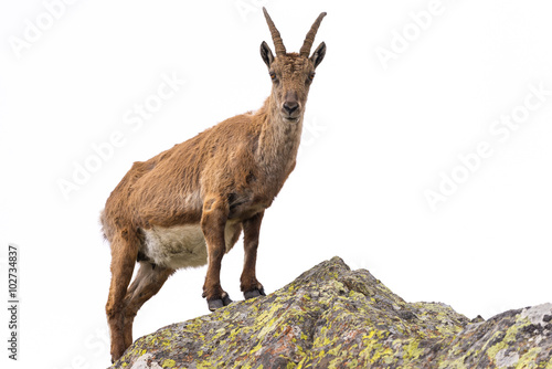 © fabio lamanna, Naklejka premium Ibex perched on rock isolated on white background