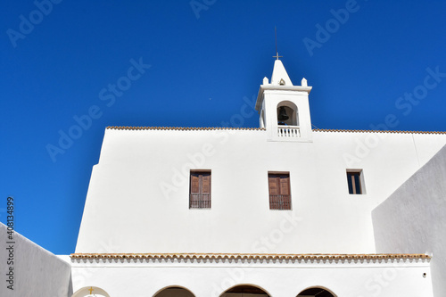 © David, Fototapeta premium Ibiza, Spain - January 17, 2021: Ibiza San Miguel Sant Miquel de Balansat white Mediterranean church on a sunny day..