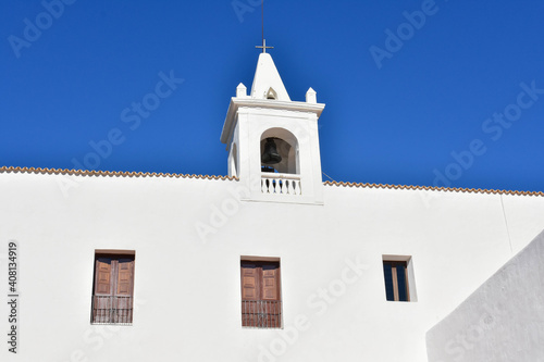 © David, Obraz premium Ibiza, Spain - January 17, 2021: Ibiza San Miguel Sant Miquel de Balansat white Mediterranean church on a sunny day..