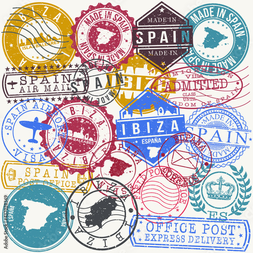 Obraz premium Ibiza Spain Set of Stamps. Travel Stamp. Made In Product. Design Seals Old...