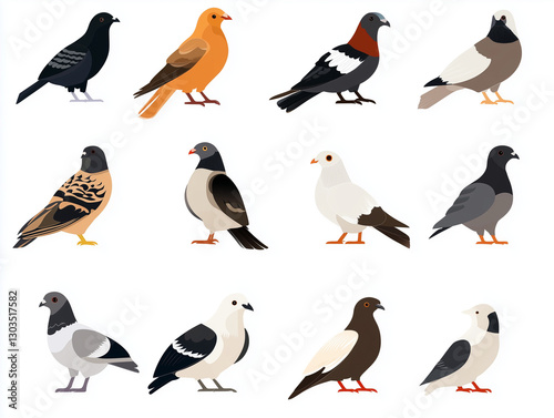 Naklejka premium Icônes de pigeons en flat design sur fond blanc