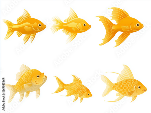 © Atlantis, Fototapeta premium Icônes de poissons rouge sur fond blanc, flat design