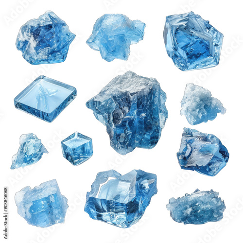 © Saim Art, Obraz premium Ice bergs ice cubes or diamond cube isolated on transparent background cutout PNG