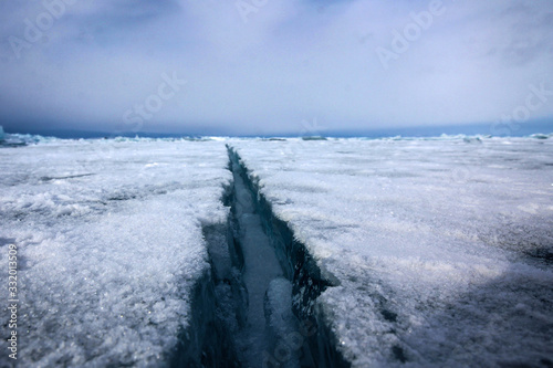 Fototapeta premium Ice break close up view, Baikal Lake, Russia
