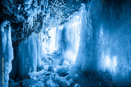 © Mykola Iegorov, Fototapeta premium Ice cave in frozen waterfall Jagala, Estonia