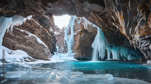 Naklejka premium Ice caves, glacial lagoons, frozen waterfalls