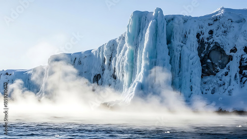 Fototapeta premium Ice Cliffs and Steam Over Cold Ocean