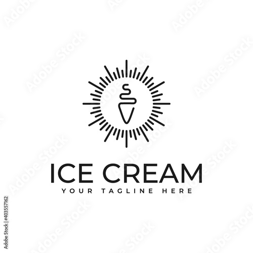 © Eki Creative, Fototapeta premium ice cream logo vector design in retro vintage style with unique line art, perfect for an ice cream shop