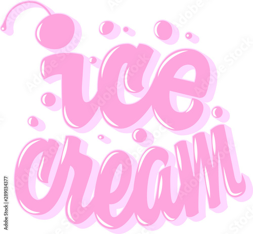 Obraz premium Ice cream text. Hand Lettering. Vector logo, print, sticker, badge...