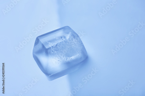 Obraz premium Ice cube on color mirror surface. Space for text
