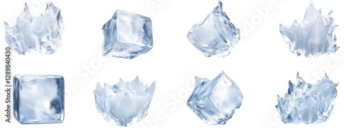 © Sakdecha, Obraz premium Ice Cubes and Broken Ice for Refreshing Drink Visuals